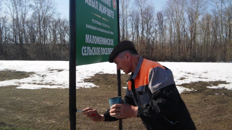 На границах поселения имеются несколько вывесок. Сегодня провели их косметический ремонт.